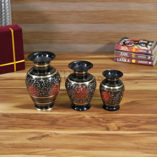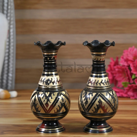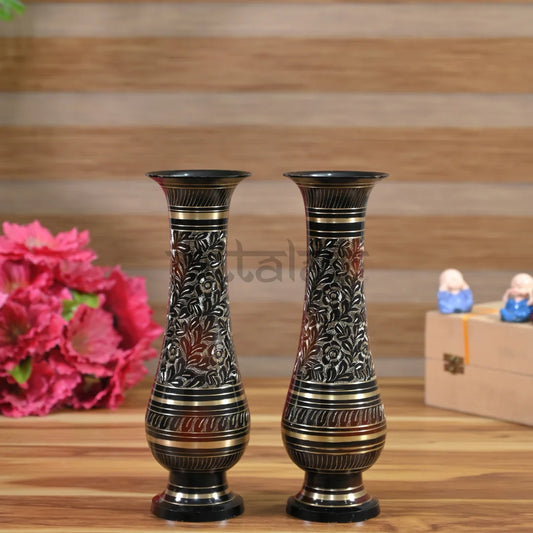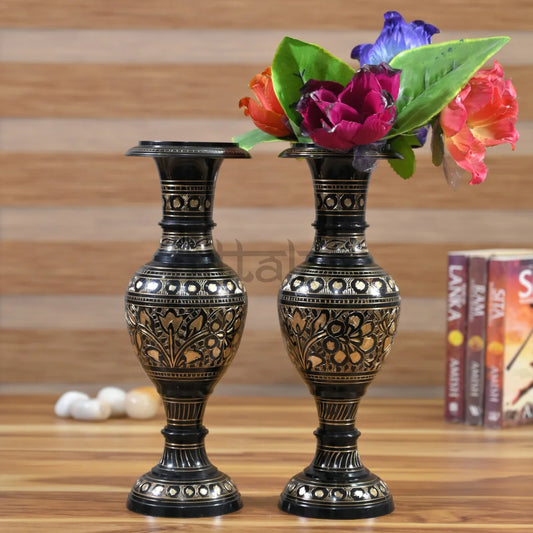 Pittalam Brass Flower Vase - Compact and Elegant Black Decor Piece