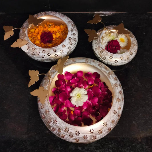 PITTALAM Butterfly Urli - Whimsical Elegance in Metal